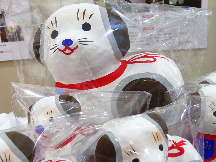 また デコ屋敷本家大黒屋さんの縁起物張子、豆だるまと干支の戌・阿部農縁さんのコンポートと食べるタレ
