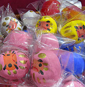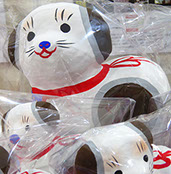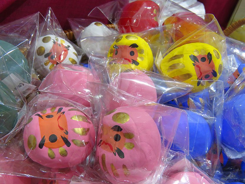 また デコ屋敷本家大黒屋さんの縁起物張子、豆だるまと干支の戌・阿部農縁さんのコンポートと食べるタレ